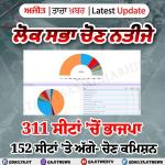 311 ਸੀਟਾਂ ’ਚੋਂ ਭਾਜਪਾ 152 ਸੀਟਾਂ ’ਤੇ ਅੱਗੇ- ਚੋਣ ਕਮਿਸ਼ਨ