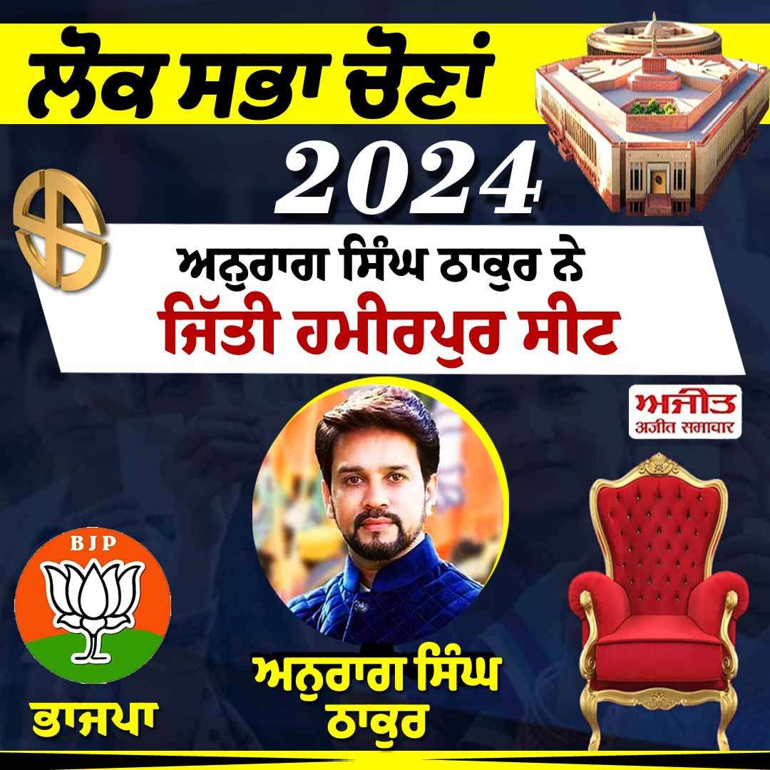 ਹਮੀਰਪੁਰ ਅਨੁਰਾਗ ਸਿੰਘ ਠਾਕੁਰ ਨੇ ਜਿੱਤੀ ਸੀਟ