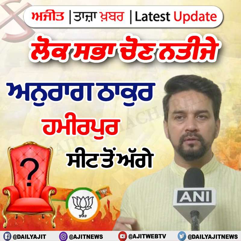 ਅਨੁਰਾਗ ਠਾਕੁਰ ਹਮੀਰਪੁਰ ਸੀਟ ਤੋਂ ਅੱਗੇ